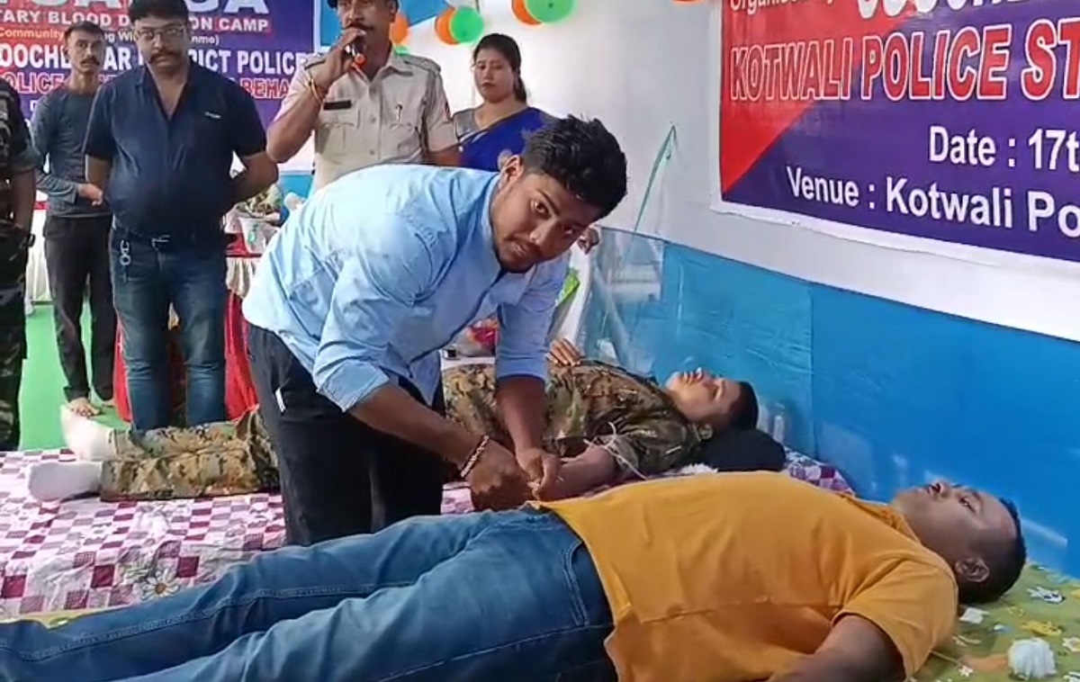 कुचबिहार जिल्ला प्रहरीले रक्तपेढीहरूमा रगतको अभाव हटाउन महत्त्वपूर्ण कदम चालेको छ। कूच बिहार पुलिस स्टेशन “उत्सर्ग” योजना अन्तर्गत बिहीबार बिहान करिब १०:२० बजे प्रहरी चौकी परिसरमा स्वैच्छिक रक्तदान शिविर आयोजना गरिएको थियो।