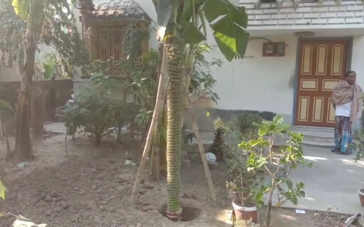 अभूतपूर्व दृश्य हेर्न नादिया जिल्लाको शान्तिपुरमा भीड जम्मा भइरहेको छ। स्थानीय बासिन्दा निरंजन सरकारले आफ्नो बगैंचामा केराको रूख रोपेका छन्, यसको मैनबत्ती लगभग सात फिट लामो छ र एक हजारभन्दा बढी केरा फलाउँछ। अचम्मको कुरा, रूखको उचाइको तुलनामा मैनबत्ती यति गह्रौं र विशाल छ कि यसलाई भुइँमा ल्याउन छुट्टै खाडल खन्नुपरेको थियो। स्थानीयहरूले यो केराको रूखलाई “हजारी केराको मैनबत्ती” भनेर चिन्छन्। यो बैंगलोरको मूल निवासी एक अद्वितीय प्रजाति हो।