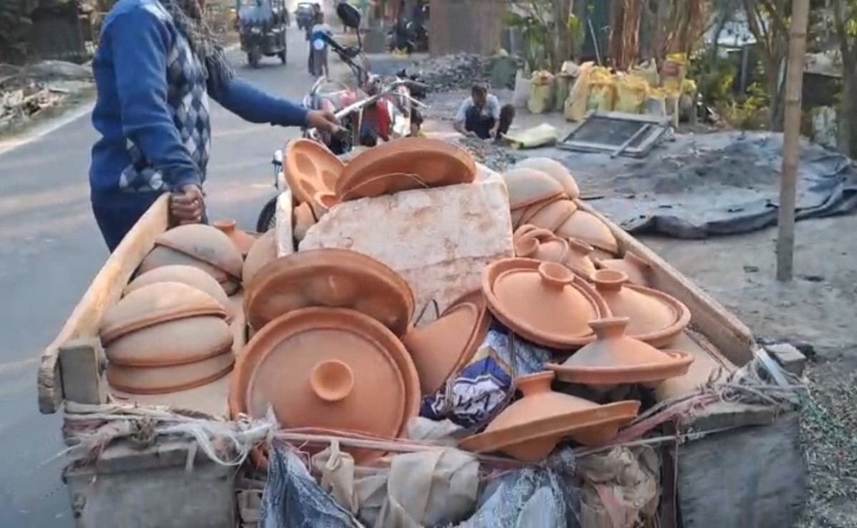 अब हाम्रो आशा केवल ग्रामीण बंगालमा मात्र केन्द्रित छ। हामी वर्षको यस समयमा केही आम्दानी गर्न दिनभर हाम्रो भ्यानमा गाउँहरू घुम्छौं।” सांस्कृतिक महत्व: पौष पर्व बंगालमा एक पर्व हो जुन माटो र कृषिसँग प्रत्यक्ष रूपमा जोडिएको छ। माटोको सार पिठा बनाउन मात्र प्रयोग गरिँदैन, तर यसलाई शुभ पनि मानिन्छ। परिवर्तनशील समयसँगै, यी माटोका भाँडाहरूको बजार सानो भएको हुन सक्छ, तर ग्रामीण क्षेत्रको भान्सामा यसको महत्त्व अझै पनि यथावत छ।